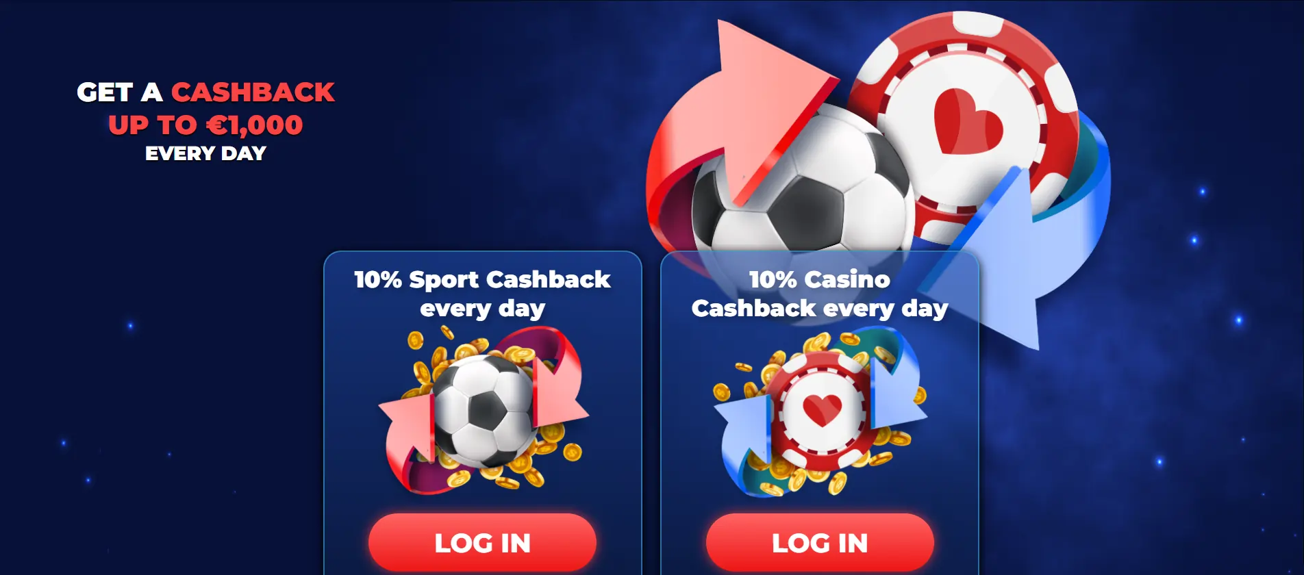 Didžiausia galima pinigų grąžinimo suma per dieną yra 1000 €. Ši akcija galioja vieną kartą per dieną ir negali būti taikoma drauge su kitomis akcijomis ar premijomis.