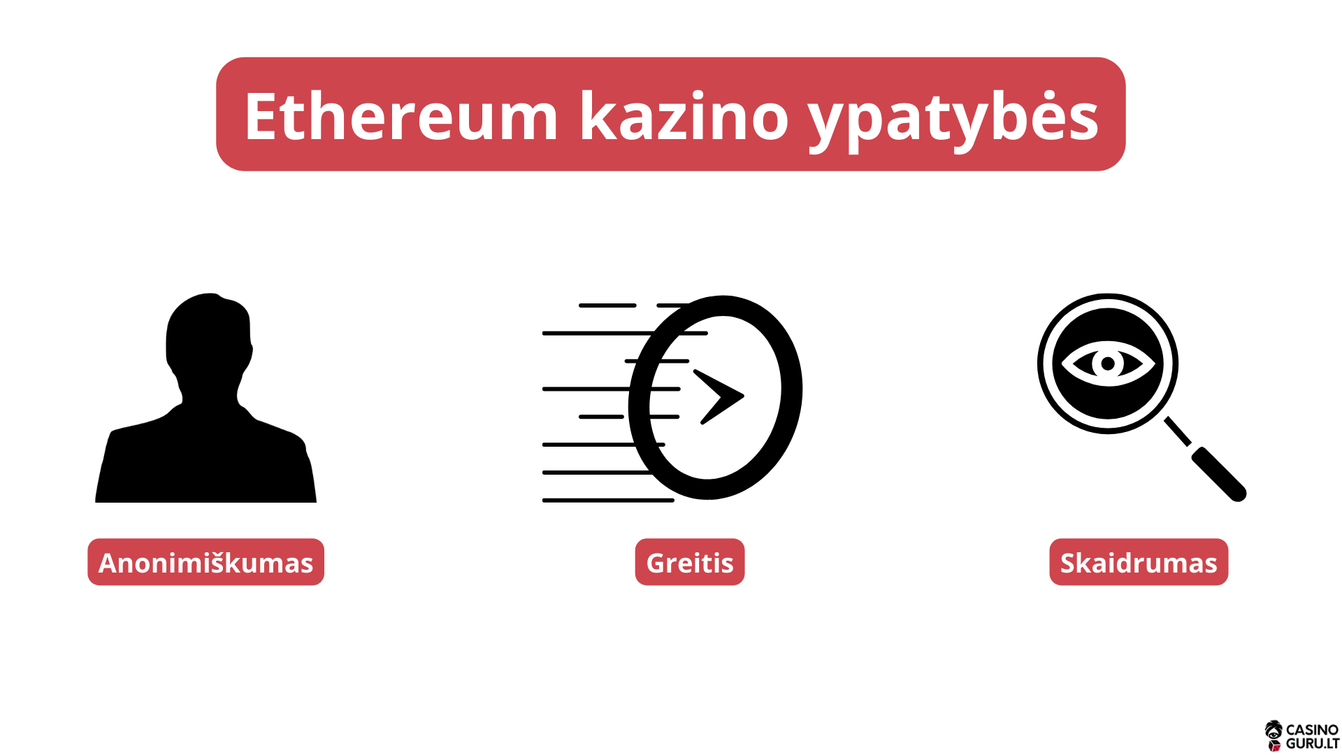 - Greiti sandoriai: ETH sandoriai, palyginti su tradiciniais bankininkystės metodais, paprastai patvirtinami greičiau. Tai leidžia greičiau atlikti įmokas, išmokas ir bendrą operacijų apdorojimą kazino.