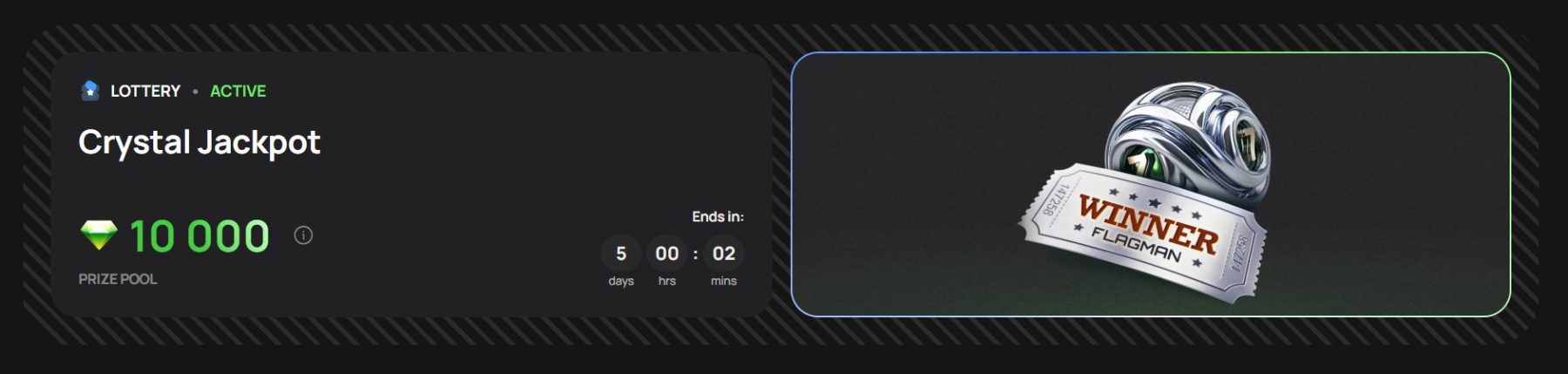 „Flagman“ dažnai organizuoja loterijas, tokias kaip „Crystal Jackpot“, kur už kiekvieną įmoką gaunate bilietų ir galite laimėti dalį prizinio fondo.