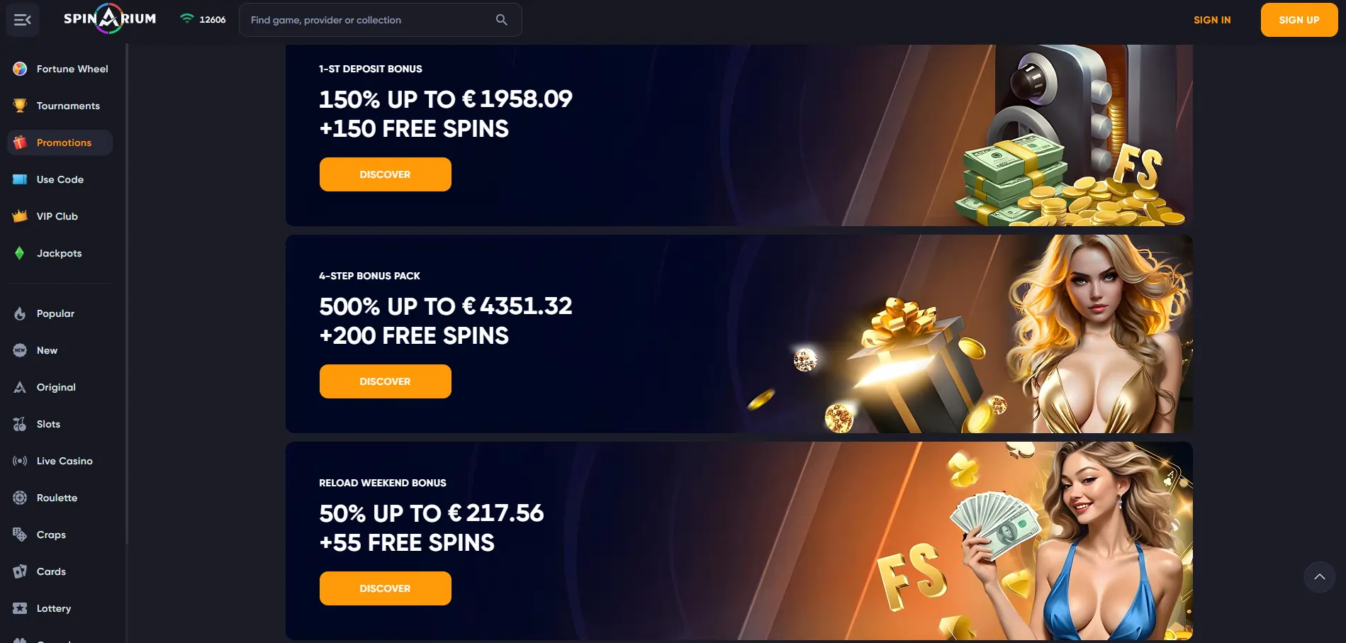 Kas iš tiesų išskiria kazino – tai išskirtinės akcijos, tokios kaip pinigų grąžinimo pasiūlymai (cashback), papildymo premijos (reload bonuses) ir kvietimai į specialius turnyrus, skirtus tik lojaliems, didelius statymus mėgstantiems, žaidėjams.