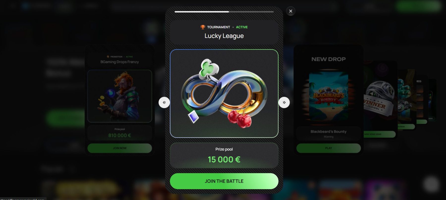 Turnyrai, tokie kaip „Drops & Wins“ (24 mln. € prizų fondas), „Spinoleague“ (12 mln. €), „BGaming Drops Frenzy“ (810 tūkst. €)