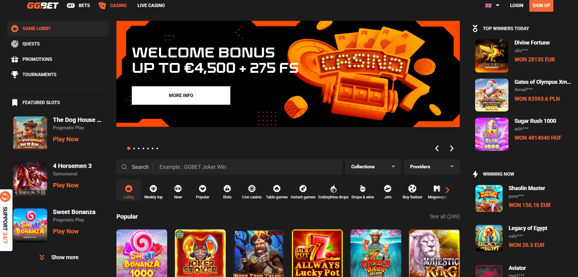 Kadangi “GG.Bet Casino“ platforma pasižymi didele žaidėjų paklausa, mes taip pat nusprendėme ją išbandyti ir patikrinti, kokius poreikius ir lūkesčius ji gali patenkinti. Platformoje daugiau nei 8 000+ žaidimų iš daugiau nei 100 tiekėjų ir gausi sporto lažybų skiltis iškart nuteikė, kad bus ką patikrinti. Taigi, nekantraujame su jumis pasidalyti ..
