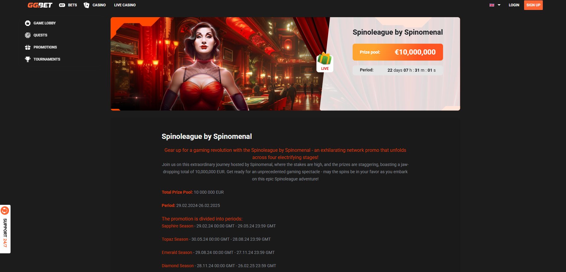 Vienas iš šiuo metu svetainėje vykstančių turnyrų yra „Spinoleague by Spinomenal“, kurio prizinis fondas siekia net 10 mln. eurų!