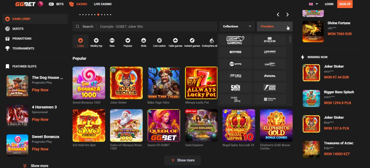 „GG.Bet“ bibliotekoje yra daugiau nei 8 000 žaidimų, kuriuos teikia daugiau nei 100 tiekėjų. Tai skamba išties fantastiškai, todėl tikrai negalime skųstis, kai prieš mus tiek daug žaidimų galimybių.