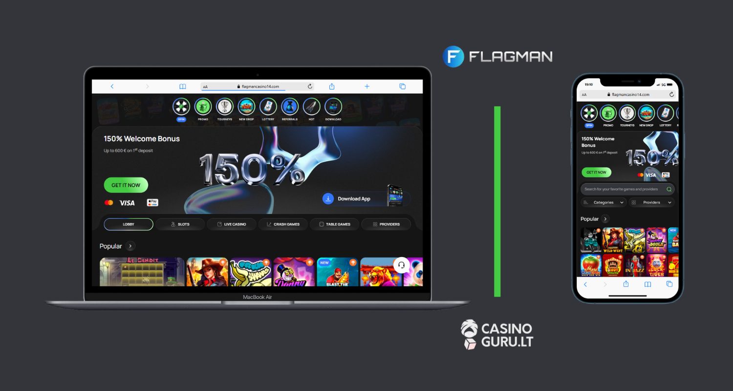 | „Flagman Casino“ | 2024 | Curaçao eGaming (OGL/2024/169/0146) | ✓ | 150 % iki 600 €, 500 nemokamų sukimų, 75 % iki 300 € |