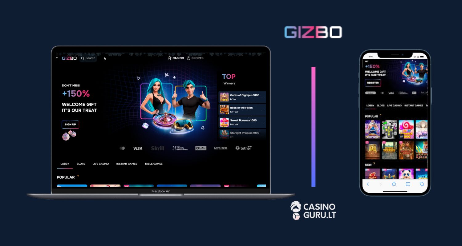 | „Gizbo Casino“ | 2024 | Curacao Gaming Authority (OGL/2024/169/0146) | ✓ | 150 % iki 600 € už pirmąjį įnašą + 600 nemokamų sukimų su antruoju įnašu |