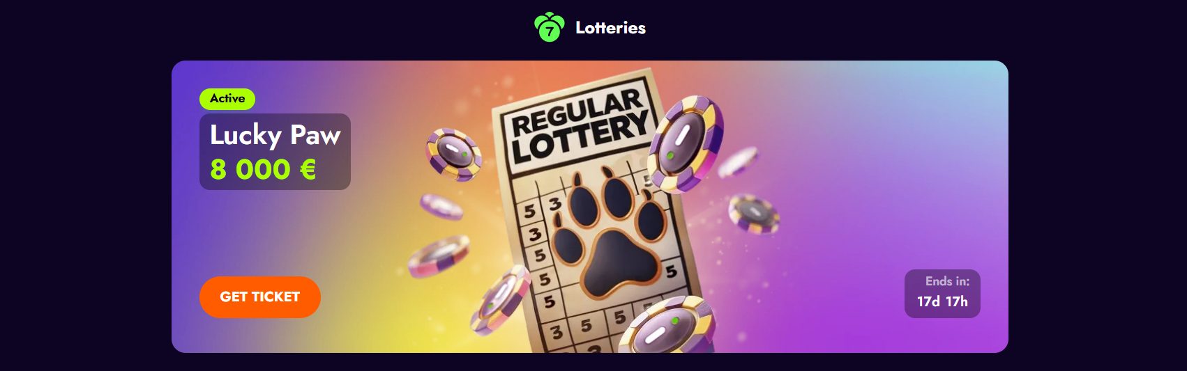Nuo 2025 m. gegužės 1 d. iki birželio 1 d. (3:00 – 2:59 UTC) dalyvauk „Lucky Paw” loterijoje ir laimėk prizus vien už aktyvumą. Kiekvienas 15 € ar didesnis įnašas suteikia loterijos bilietų. Kuo didesnis įnašas – tuo pigesni bilietai.