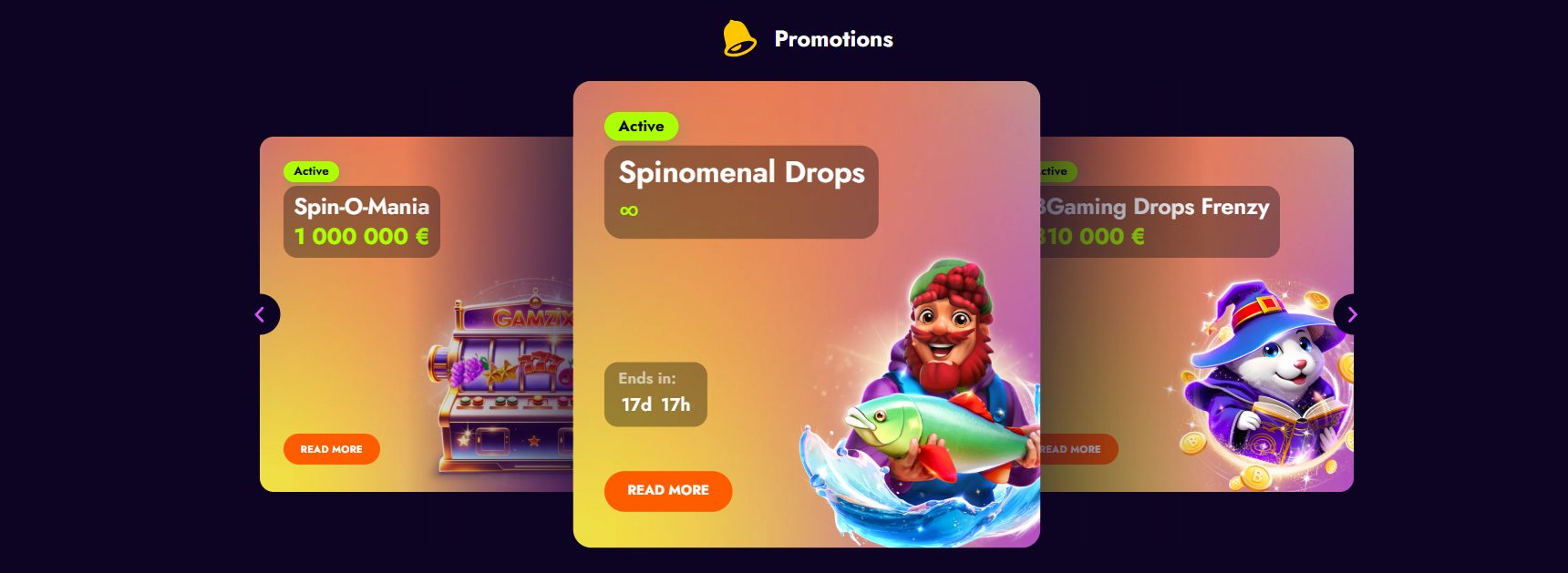 Nuo 2025 m. gegužės 1 d. iki gegužės 31 d. (00:01 – 23:59 UTC) žaidėjų Lietuvoje laukia „Spinomenal Drops”, kur kiekvieno sukimo metu gali pasirodyti staigus „multiplier” iki 1 000x – nepriklausomai nuo to, ar sukimasis buvo sėkmingas, ar ne. Čia nereikia nei didelio statymo, nei laimėjimų serijos.