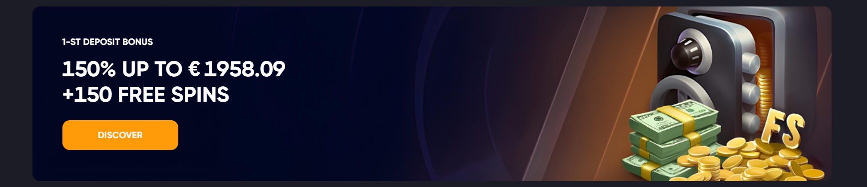 Su pirmuoju įnašu (vos nuo 4,35 €) jūs galite gauti 150% premiją iki 1 958,09 € ir 150 nemokamų sukimų.