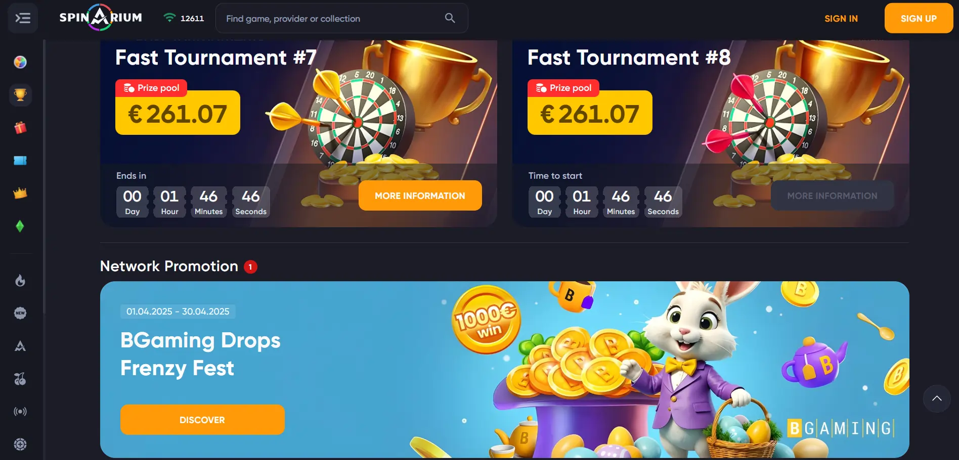 Taip pat pastebėjome daug organizuojamų tinklo turnyrų, tokių kaip „BGaming Drops Frenzy Fest“ ir „1spin4Win Variety of Luck“.